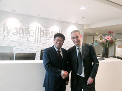 公司董事長率領(lǐng)團(tuán)隊訪問利安德巴賽爾公司 | 公司董事長率領(lǐng)團(tuán)隊訪問利安德巴賽爾公司 | 公司董事長與比利時客戶合影 |